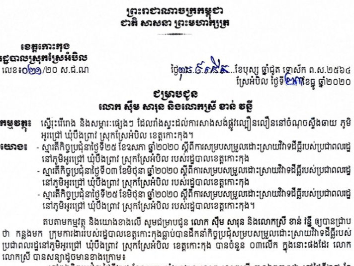 សេចក្តីជូនដំណឹង របស់រដ្ឋបាលខេត្ដកោះកុង