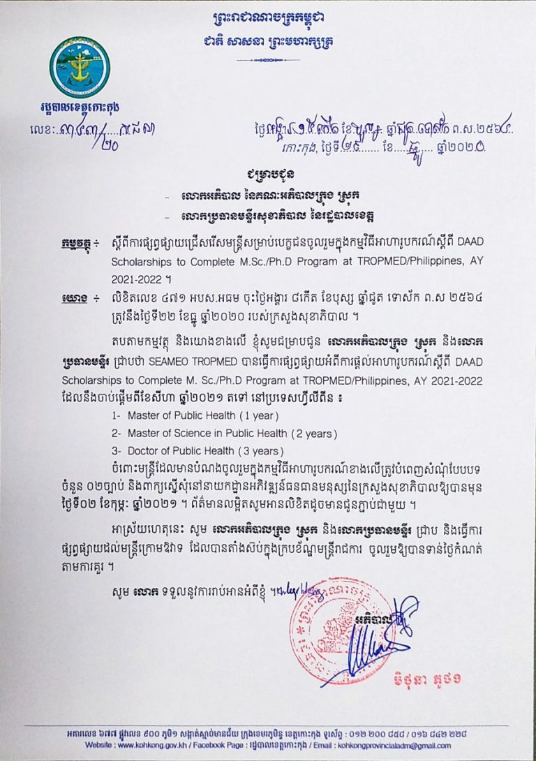 សេចក្តីជូនដំណឹង ស្តីពីការផ្សព្វផ្សាយជ្រើសរើសមន្ត្រីសម្រាប់បេក្ខជនចូលរួមក្នុងកម្មវិធីអាហារូបករណ៍ស្តីពី DAAD