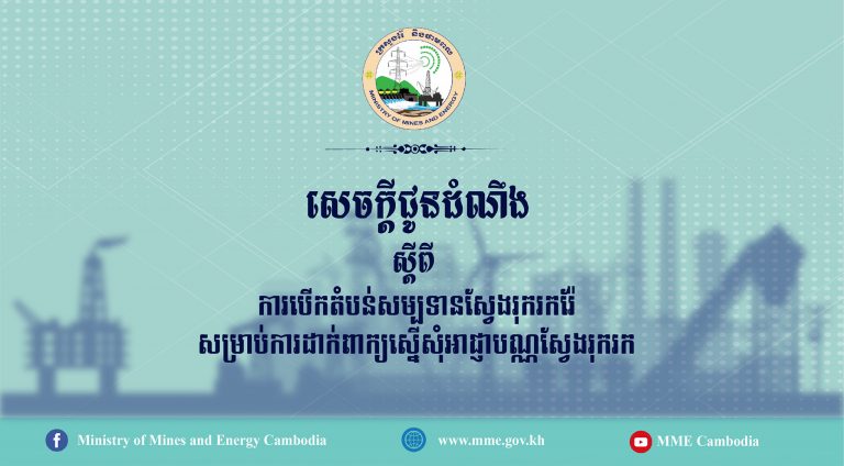 សេចក្តីជូនដំណឹងស្តីពីការបើកតំបន់សម្បទានស្វែងរុករករ៉ែសម្រាប់ការដាក់ពាក្យស្នើសុំអាជ្ញាបណ្ណស្វែងរុករក