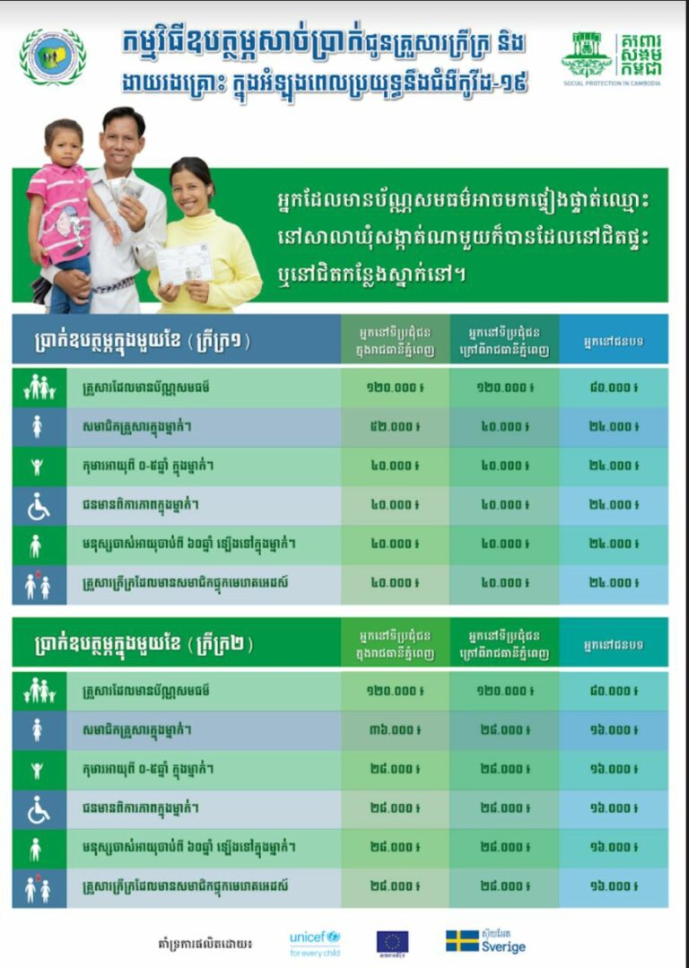 កម្មវិធីឧបត្ថម្ភសាច់ប្រាក់ ជូនគ្រួសារក្រីក្រ និងងាយរងគ្រោះ ក្នុងអំឡុងពេលប្រយុទ្ធនឹងជំងឺកូវីដ-១៩