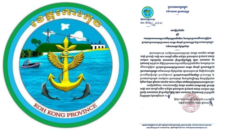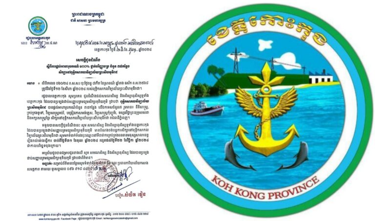 សេចក្តីជូនដំណឹង របស់មន្ទីរបរិស្ថានខេត្តកោះកុង