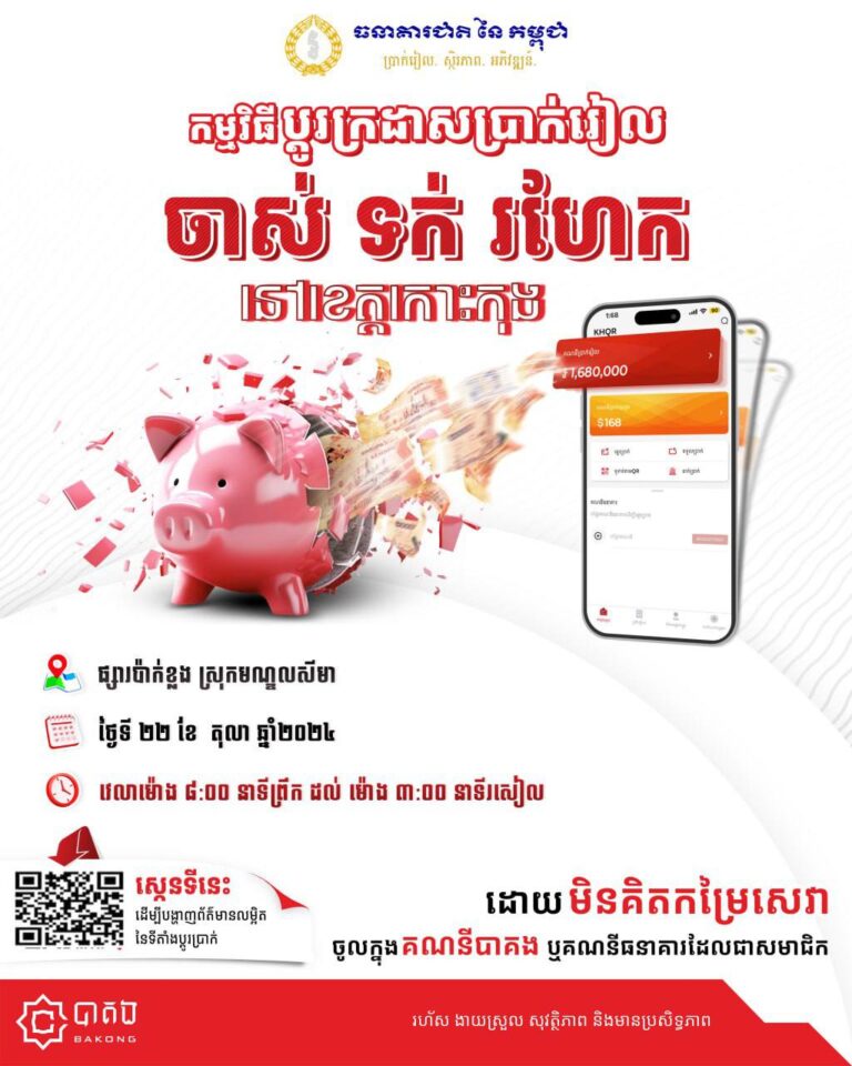 សេចក្តីជូនដំណឹង ស្តីពីកម្មវិធីប្តូរក្រដាសប្រាក់រៀលចាស់ ទក់ រហែក នៅខេត្តកោះកុង