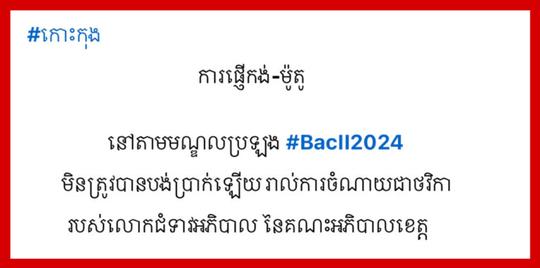 ខេត្តកោះកុង ការផ្ញើ កង់-ម៉ូតូ នៅតាមមណ្ឌលប្រឡងមធ្យមសិក្សាទុតិយភូមិមិនត្រូវបានបង់ប្រាក់ឡើយ