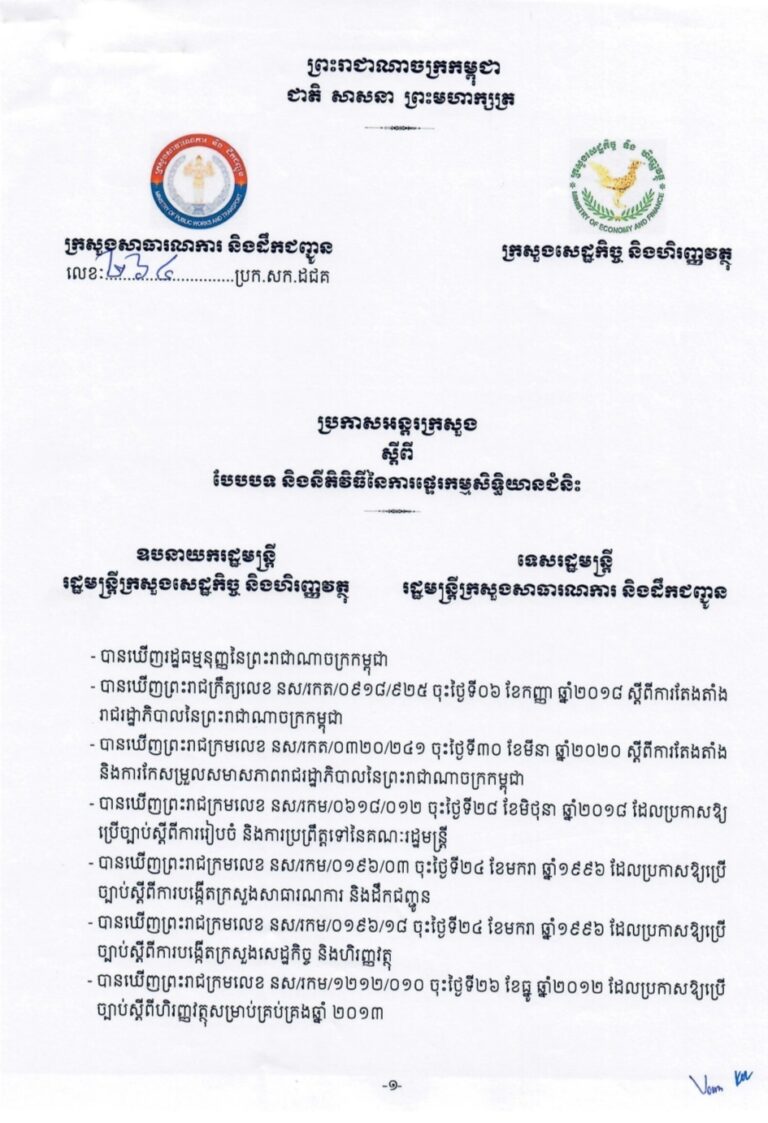 ប្រកាសអន្តរក្រសួង ស្តីពីបែបបទ និងនីតិវិធីនៃការផ្ទេរកម្មសិទ្ធិយានជំនិះ