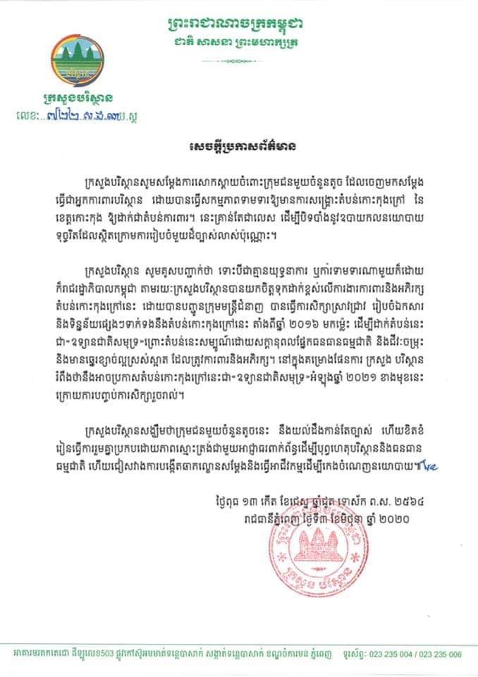 សេចក្តីប្រកាសព័ត៌មាន ក្រសួងបរិស្ថាន