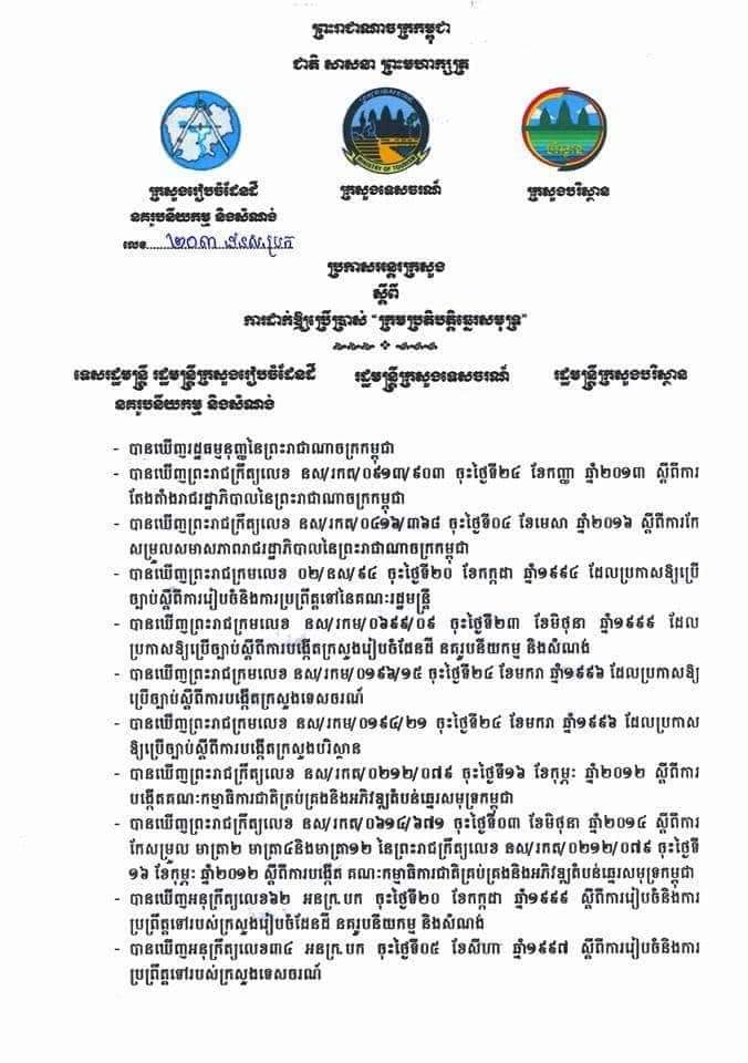 ប្រកាសអន្តរក្រសួង ស្តីពីការដាក់ឱ្យប្រើប្រាស់ “ក្រមប្រតិបត្តិឆ្នេរសមុទ្រ”