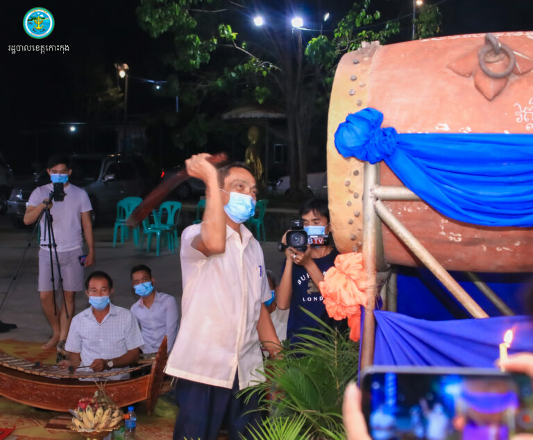 ឯកឧត្តម កាយ សំរួម ប្រធានក្រុមប្រឹក្សាខេត្តកោះកុង និងលោកជំទាវ បានអញ្ជើញ វាយជួង រគាំង និងទូងស្គរ ដើម្បីបណ្តេញជំងឺអាសន្នរោគឧបទ្រុបចង្រៃ និងក្រើនរំលឹកសូមបងប្អូនពលរដ្ឋទាំងអស់ជួយទប់ស្កាត់ការពារជំងឺកូវីដ-១៩