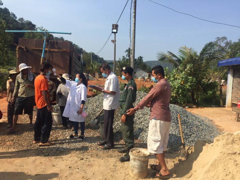 លោក គិត នី ជំទប់ទី២ឃុំ បានដឹកនាំក្រុមការងារឃុំចុះវាស់កម្តៅកម្មករធ្វើផ្លូវបេតុងនៅភូមិអន្លង់វ៉ាក់ ឃុំតាតៃក្រោម