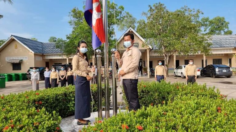 មន្ត្រីនៃរដ្ឋបាលក្រុងខេមរភូមិន្ទ អនុវត្តគោរពទង់ជាតិរៀងរាល់ព្រឹកថ្ងៃចន្ទដើមសប្តាហ៍