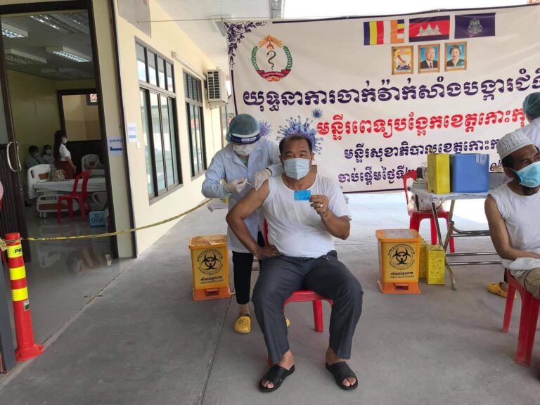 ថ្នាក់ដឹកនាំ និងមន្ត្រីនៃមន្ទីរធម្មការ និងសាសនាខេត្តកោះកុង និងថ្នាក់ដឹកនាំសង្ឃនៃសាលាគណទាំងពីរគណៈ បានចាក់វ៉ាក់សាំងកូវីដ-១៩ Sinovac លើកទី១
