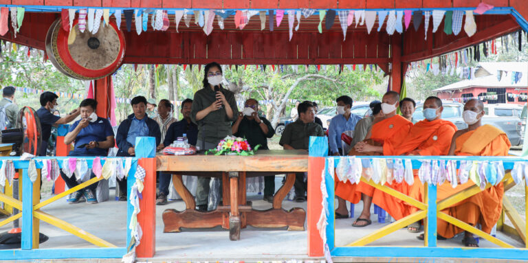 លោកជំទាវ មិថុនា ភូថង អភិបាល នៃគណៈអភិបាលខេត្តកោះកុង បានអញ្ជើញចុះជួបសំណេះសំណាល និងចែកអំណោយជាគ្រឿងឧបភោគបរិភោគ និងសម្ភារប្រើប្រាស់មួយចំនួន ជូនប្រជាពលរដ្ឋ នៅភូមិពោធិ៍បឹង ឃុំដងពែង ស្រុកស្រែអំបិល ខេត្តកោះកុង