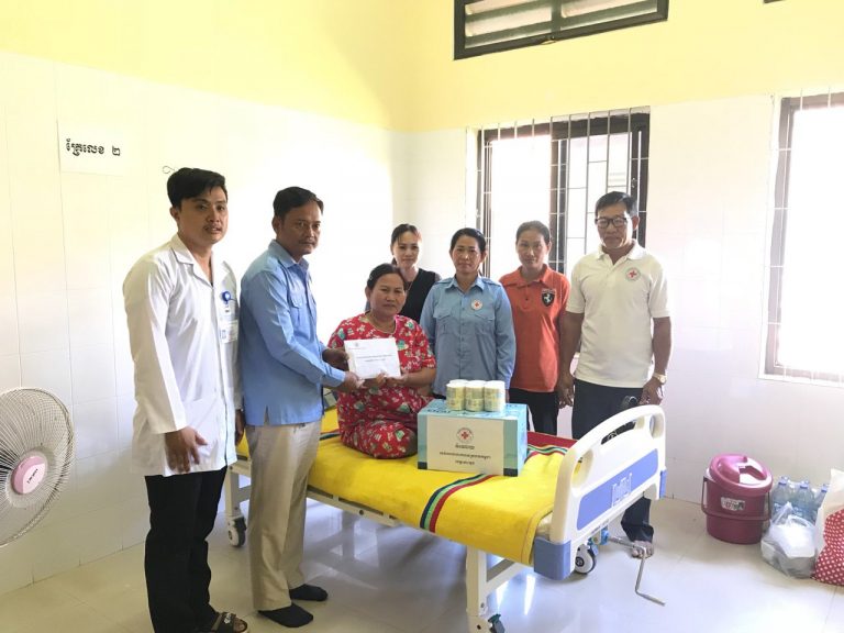 លោកនាយកប្រតិបត្តិសាខា អញ្ជើញចុះសួរសុខទុក្ខ និងនាំយកអំណោយ មនុស្សធម៌ផ្តល់ជូនលោកស្រី គង់ ណាយ អាយុ៥៧ឆ្នាំ ជាអ្នកស្ម័គ្រចិត្តកាកបាទក្រហម សង្កាត់ដងទង់ ដែលកំពុងសម្រាកព្យាបាលជម្ងឺ