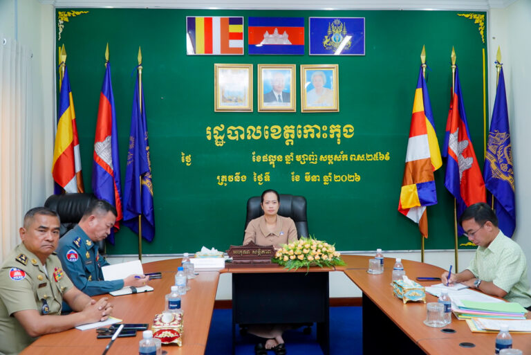 លោកជំទាវ ឈី វ៉ា អភិបាល នៃគណៈអភិបាលខេត្តកោះកុង បានអញ្ជើញចូលរួម ក្នុងកិច្ចប្រជុំប្រចាំសប្តាហ៍ ដើម្បីតាមដានវឌ្ឍនភាពការងារបង្រ្កាបបទល្មើសឆបោកតាមប្រព័ន្ធបច្ចេកវិទ្យា Online Scams