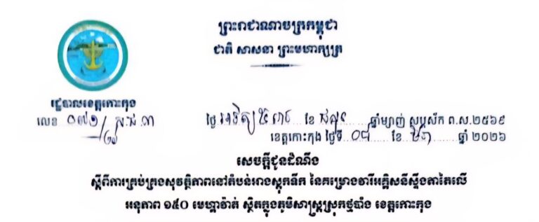 លោក ខេង គង់ អភិបាលរងស្រុក តំណាងឱ្យលោកអភិបាល នៃគណៈអភិបាលស្រុកបូទុមសាគរ បានអញ្ជើញចូលរួមកិច្ចប្រជុំគណៈកម្មាធិការ និងលេខាធិការដ្ឋានប្រយុទ្ធ និងជំងឺអេដស៍ខេត្តកោះកុង សម្រាប់ត្រីមាសទី១ ឆ្នាំ២០២៦