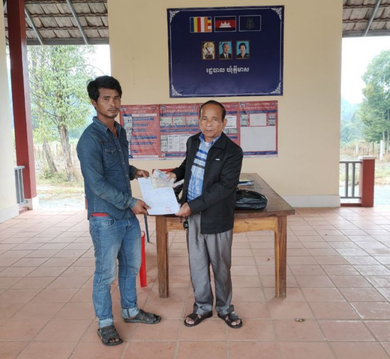 លោក ឡុញ សុផល មេឃុំភ្ញីមាស ស្រុកគិរីសាគរ បាននាំយកថវិកា ចំនួន ២០០,០០០រៀល ជូនដល់ប្រជាពលរដ្ឋ ឈ្មោះ ស៊ូយ សូ ភេទស្រី អាយុ ៣៣ ឆ្នាំ រស់នៅភូមិតានី ដែលទើបឆ្លងទន្លេរួច។