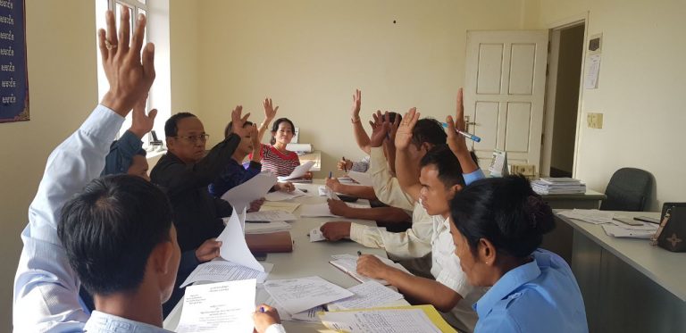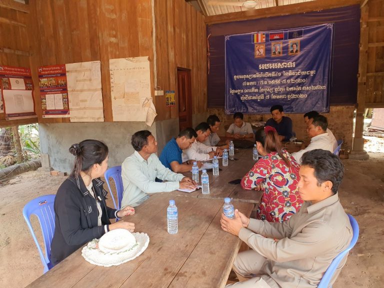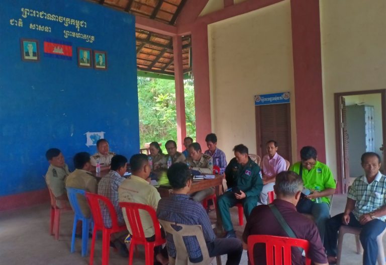 កិច្ចប្រជុំ ដើម្បីណែនាំ និងទប់ស្កាត់ការចាក់បំពេញដីនៅលើចំណីស្ទឹង ព្រែក នៅឃុំជីផាត និងចូលរួមសិក្សាគម្រោងទំនប់បង្ហៀរ នៅភូមិជាំស្លា ឃុំជីផាត ស្រុកថ្មបាំង