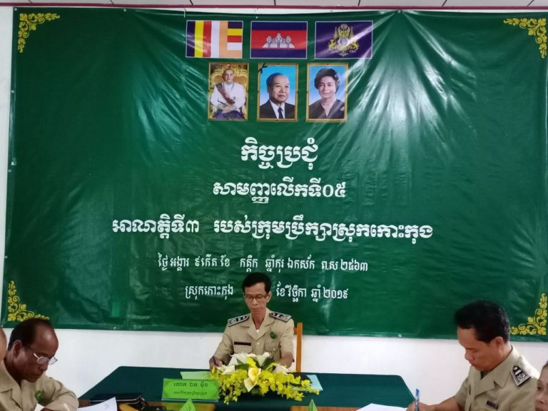 កិច្ចប្រជុំសាមញ្ញលើកទី៥ អាណត្តិទី៣ របស់ក្រុមប្រឹក្សាស្រុកកោះកុង ក្រោមអធិបតីភាព លោក ឯក ម៉ឹង សមាជិកក្រុមប្រឹក្សាស្រុក