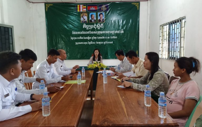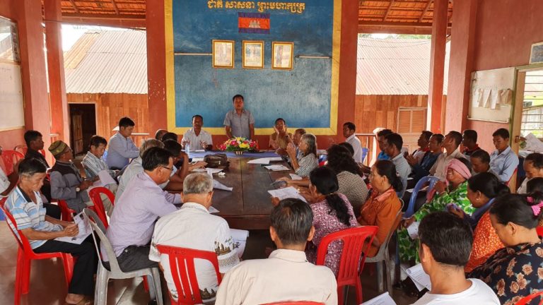 កិច្ចប្រជុំដោះស្រាយសម្របសម្រួលប្រជានេសាទ ជាមួយអ្នកចិញ្ចឹមគ្រែងឈាម នៅឃុំអណ្ដូងទឹក និងឃុំថ្មស ស្រុកបូទុមសាគរ