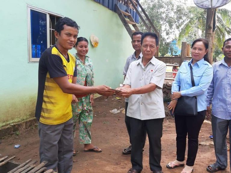 ប្រធានកិតិ្តយស អនុសាខាកាកបាទក្រហមស្រុកថ្មបាំង បានយកស័ង្កសី និងហ្រ្វូស៊ីម៉ង់ ជូនប្រជាពលរដ្ឋរងគ្រោះ ដោយសារខ្យល់កន្ត្រាក់នៅភូមិជាំស្លា ឃុំជីផាត ចំនួន ៨ គ្រួសារ