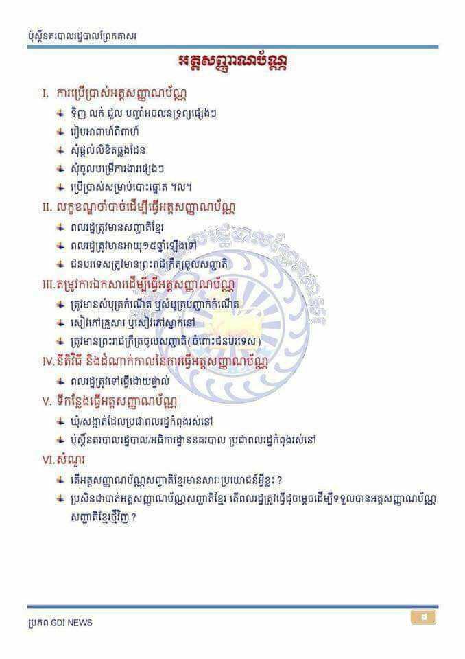 សារៈសំខាន់ នៃអត្តសញ្ញាណប័ណ្ណ សំបុត្រកំណើត សៀវភៅស្នាក់នៅ សៀវភៅគ្រួសារ និងសំបុត្រមរណៈភាព