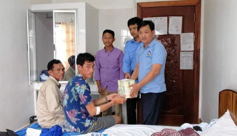 អភិបាលស្រុកថ្មបាំង និងជាប្រធានសសយកស្រុក បានដឹកនាំសមាជិកមកសួរសុខទុក្ខលោក មាស ផល្លី មេភូមិជាំស្លា ឃុំជីផាត ក្នុងស្រុកថ្មបាំង