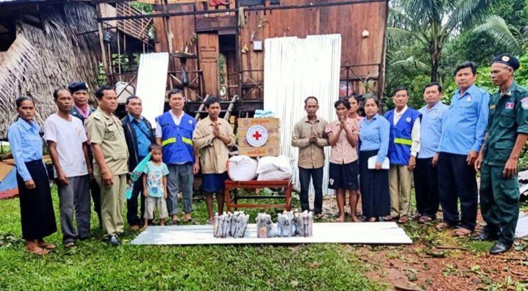 អនុសាខាកាកបាទក្រហមកម្ពុជា ស្រុកស្រែអំបិល បាននាំយកអំណោយចុះចែកជូនប្រជាពលរដ្ឋរងគ្រោះដោយខ្យល់កន្ត្រាក់ចំនួន ០៥ គ្រួសារ