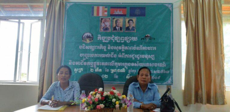 កិច្ចប្រជុំផ្សព្វផ្សាយ បដិសណ្ឋារកិច្ច និងសុវត្ថភាពចំណីអាហារ បញ្ជ្រាបការយល់ដឹង អំពីការជួយដូរមនុស្ស និងអាជីវកម្មផ្លូវភេទលើកុមារ ក្នុងវិស័យទេសចរណ៍។