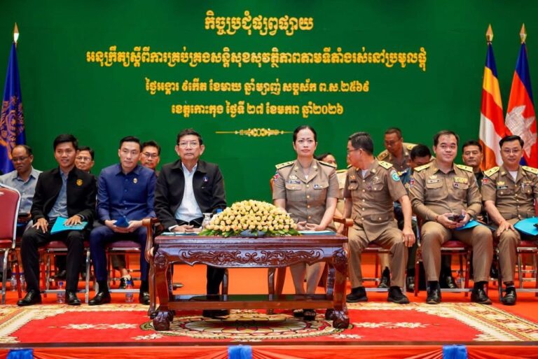 លោក ជា ច័ន្ទកញ្ញា អភិបាល នៃគណៈអភិបាលស្រុកស្រែអំបិល បានអញ្ជើញចូលរួមកិច្ចប្រជុំផ្សព្វផ្សាយអនុក្រឹត្យ ស្តីពីការគ្រប់គ្រងសន្តិសុខសុវត្ថិភាពតាមទីតាំងរស់នៅប្រមូលផ្តុំ របស់រាជរដ្ឋាភិបាលកម្ពុជា ក្រោមអធិបតីភាពដ៍ខ្ពង់ខ្ពស់ លោកជំទាវ ឈី វ៉ា អភិបាល នៃគណៈអភិបាលខេត្តកោះកុង