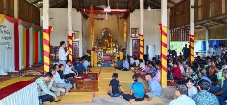 ក្រុមការងារថ្នាក់ស្រុក ចុះជួបសំណេះសំណាលជាមួយប្រជាពលរដ្ឋ ចំនួន០២ភូមិ ភូមិព្រែកខ្យង និងភូមិទួលពោធិ៍ ឃុំតានូន ស្រុកបូទុមសាគរ ខេត្តកោះកុង នៅវត្តសុវណ្ណតេជោ ហៅវត្តភ្នំប្រជៀវ
