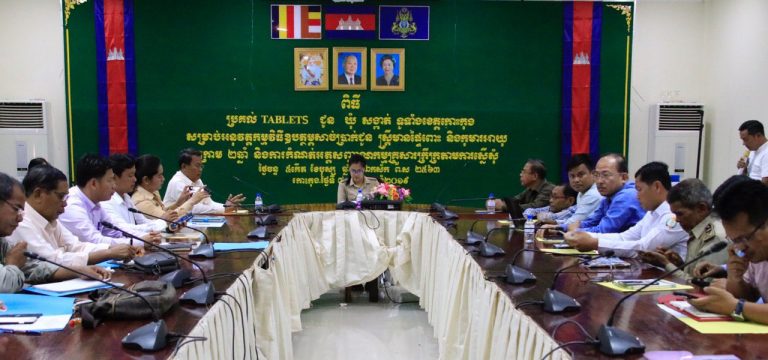 លោកជំទាវ មិថុនា ភូថង អភិបាល នៃគណៈអភិបាល ខេត្តកោះកុង បានអញ្ជើញជាអធិបតី ក្នុងពិធីប្រគល់ទទួលTablets ជូនឃុំ សង្កាត់ទូទាំងខេត្តកោះកុង សម្រាប់អនុវត្តកម្មវិធីឧបត្តម្ភសាច់ប្រាក់ជូនស្រ្តីមានផ្ទៃពោះ និងកុមារអាយុក្រោម ២ឆ្នាំ និងកំណត់អត្តសញ្ញាណជនក្រីក្រតាមការស្នើសូម នៅសាលប្រជុំ(ខ) សាលាខេត្តកោះកុង។