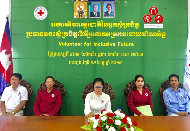 សាខាកាកបាទក្រហមកម្ពុជា ខេត្តកោះកុង បានប្រារព្ធទិវាអន្តរជាតិ នៃអ្នកស្ម័គ្រចិត្ត ៥ ធ្នូ ២០១៩ ក្រោមប្រធានបទ «ស្ម័គ្រចិត្តដើម្បីអនាគតប្រកបដោយបរិយាប័ន្ន» ក្រោមអធិបតីភាព លោកជំទាវ មិថុនា ភូថង ប្រធានគណៈកម្មាធិការសាខា កក្រក ខេត្តកោះកុង សមាជិក សមាជិកាគណៈកម្មាធិការសាខា ព្រមទាំងអញ្ជើញចូលរួមពីថ្នាក់ដឹកនាំ-មន្ត្រី សាខា កក្រក ខេត្តកោះកុង អនុសាខាកក្រក ក្រុងខេមរភូមិន្ទ អ្នកស្ម័គ្រចិត្ត សរុបប្រមាណ ៤៥នាក់ នៅសាលប្រជុំមន្ទីរសាធារណៈការ និងដឹកជញ្ជូនខេត្តកោះកុង។