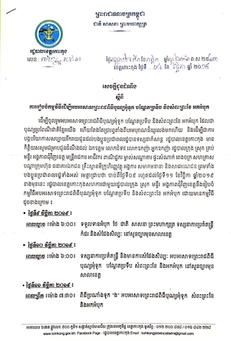 សេចក្តីជូនដំណឹង របស់រដ្ឋបាលខេត្តកោះកុង