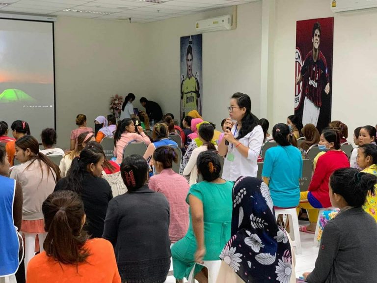 មន្រ្តីសុខាភិបាលផ្នែកគាំពារមាតា និងទារក ចុះអប់រំសុខភាព ដល់កម្មការិនី មានផ្ទៃពោះ នៅរោងចក្រ ខេខេអិន (KKN) ចំនួន ៣៧៥ នាក់ ស្តីពី “ការលើកកម្ពស់សុខភាពស្ត្រីមានផ្ទៃពោះ”